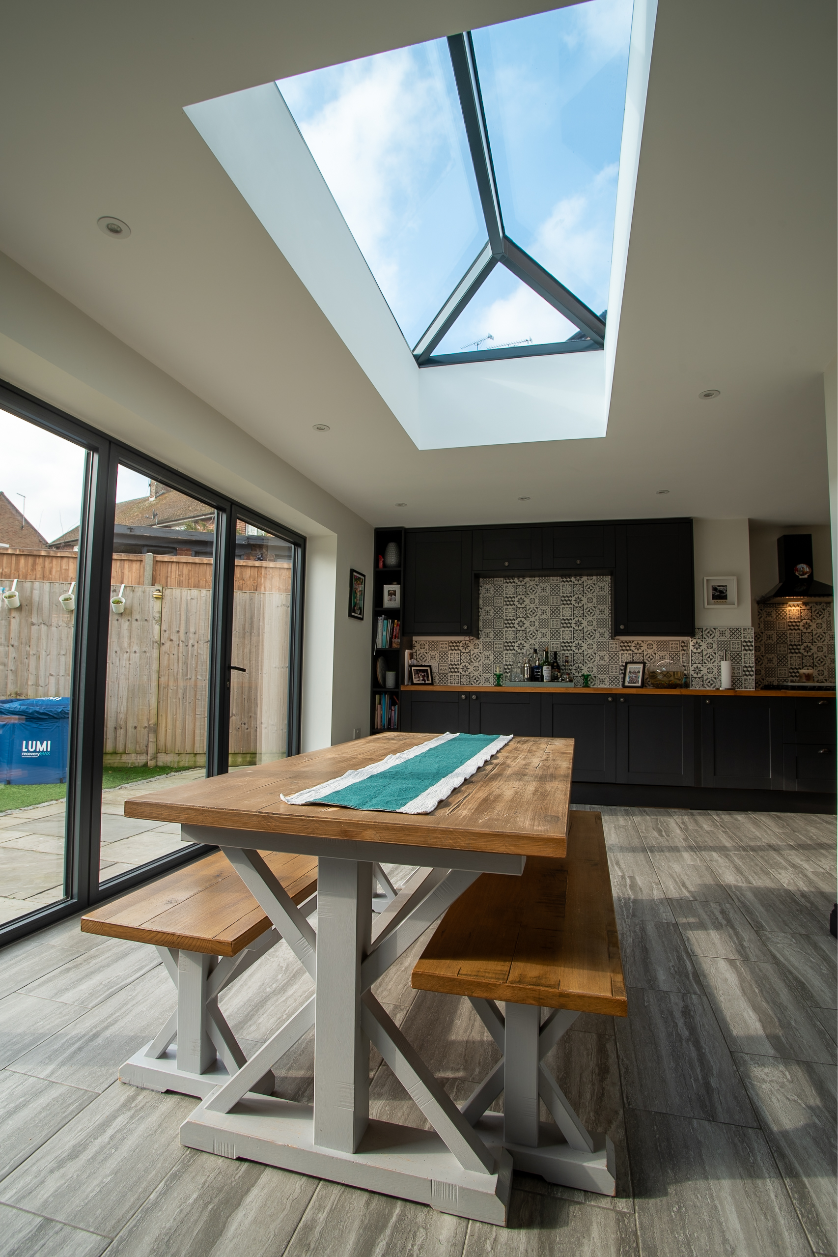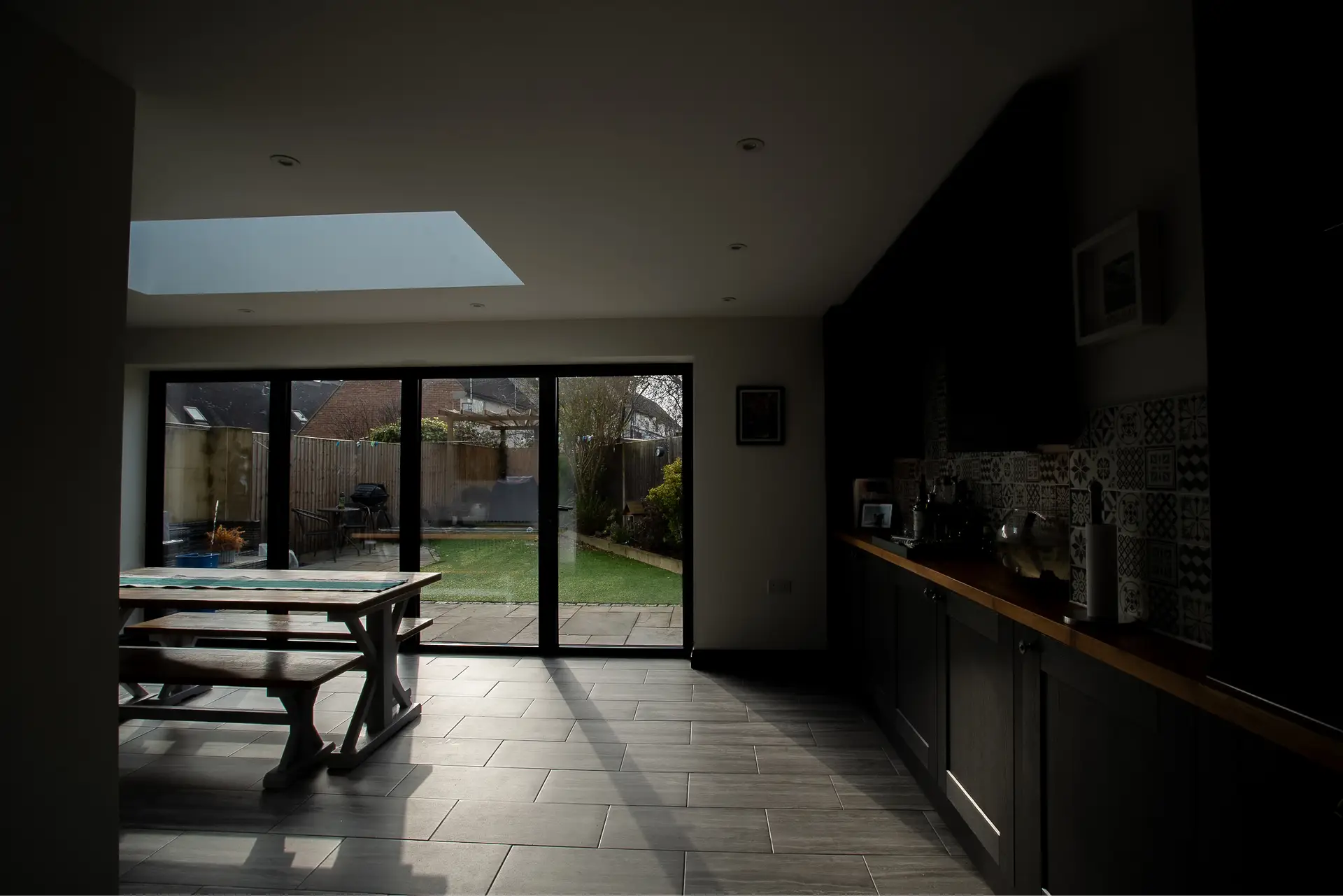 Stylish Tiled Floors: The choice of tiled flooring throughout the extension adds a touch of elegance while being practical and easy to maintain. The tiles complement the overall design aesthetic and provide a durable surface that can withstand the rigors of daily use.