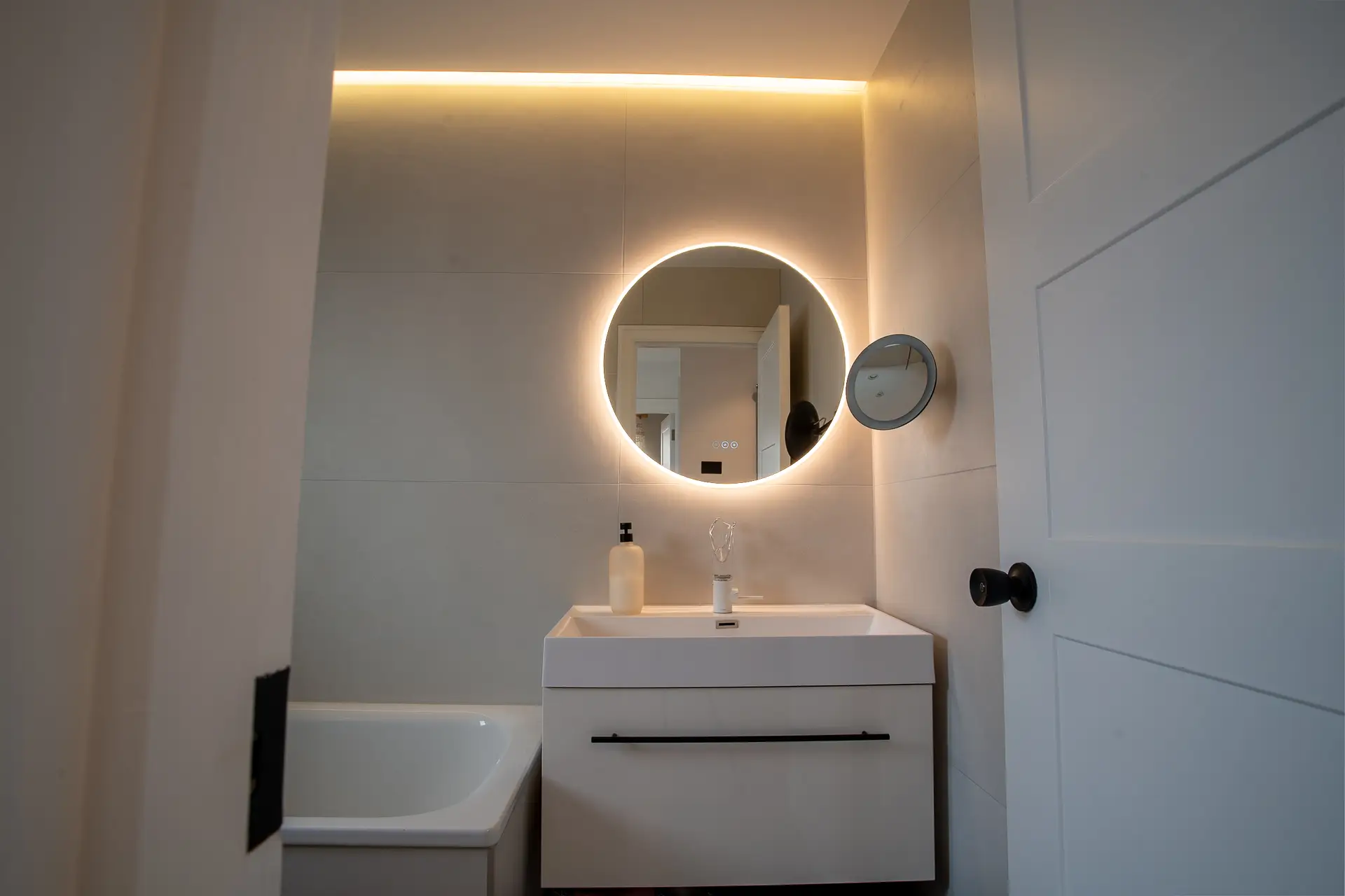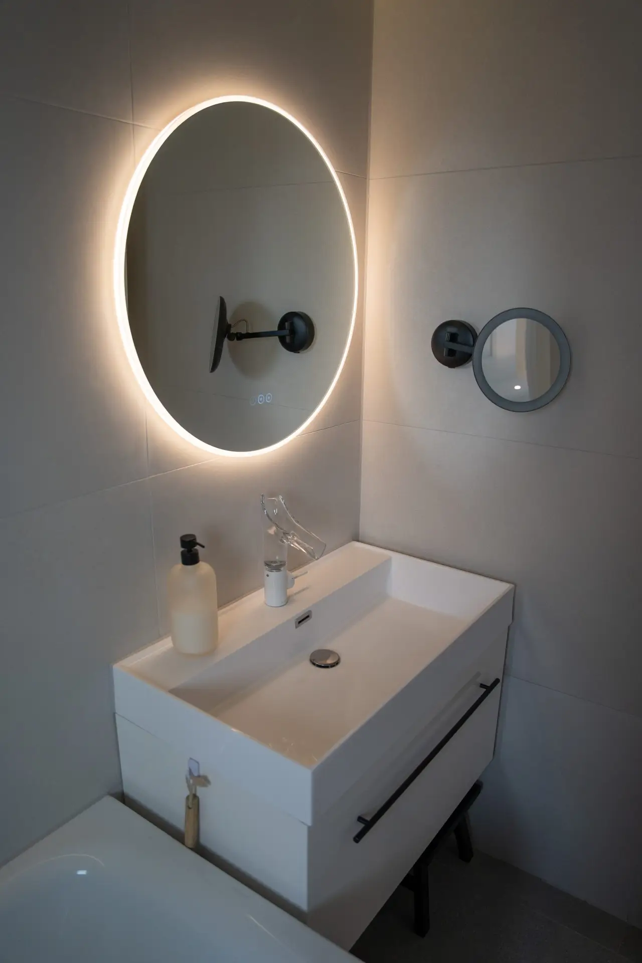 Designers, iconic furniture was used to achieve elegant, sophisticated look.