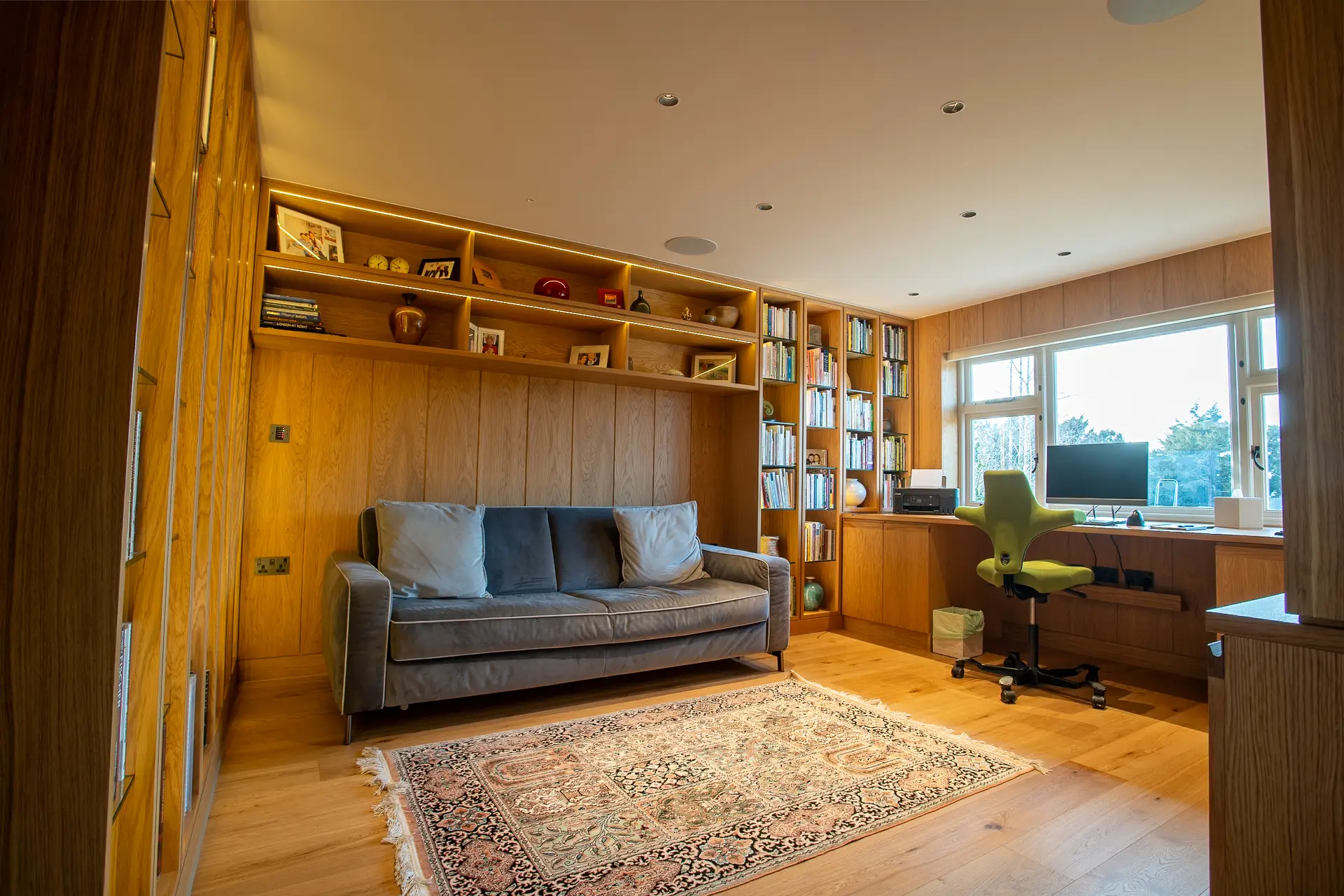 • Fitted Wardrobes and Office Spaces: Crafted from oak, these bespoke solutions maximise space and provide elegant storage options.
