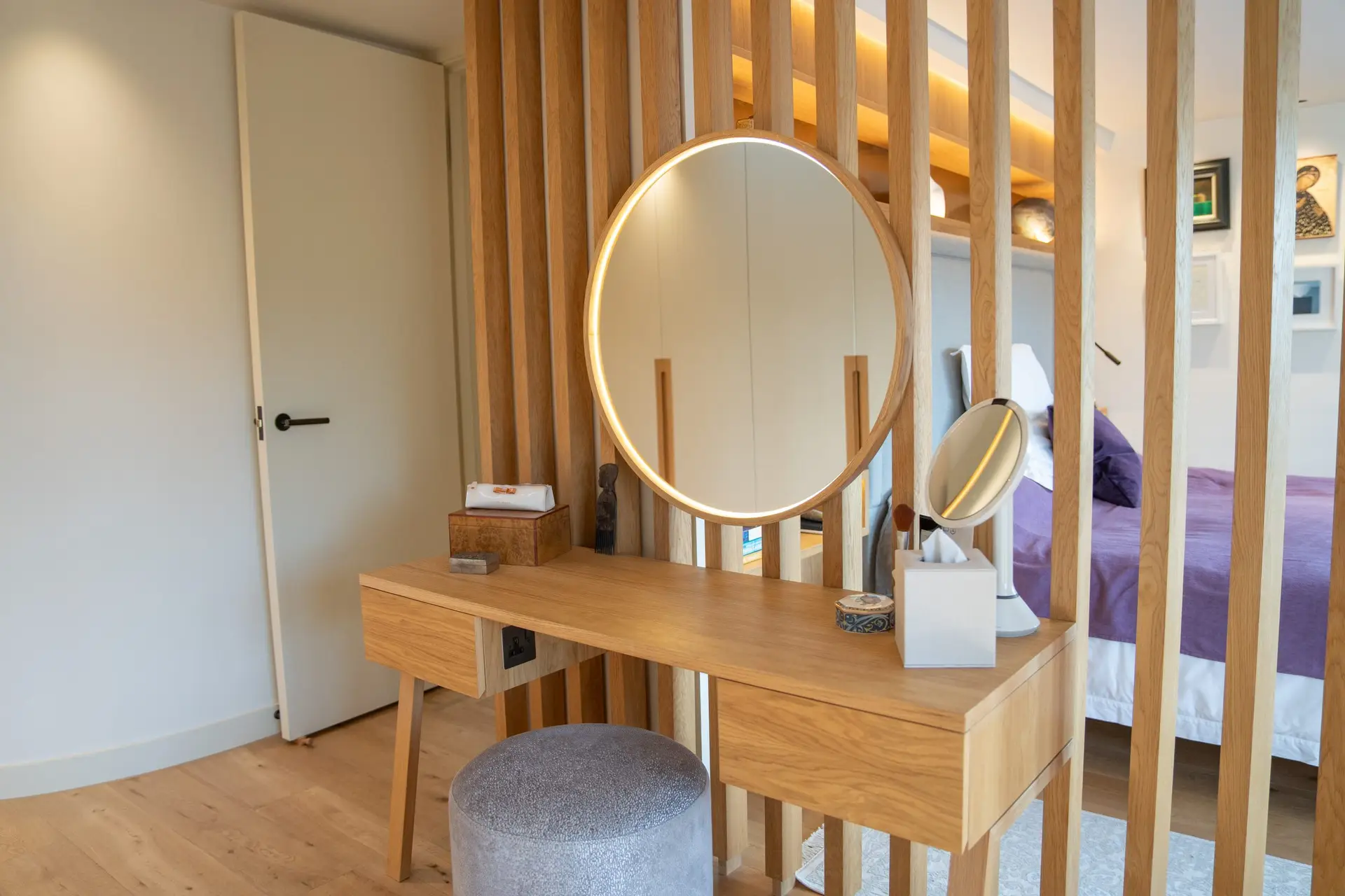 Inside, the home radiates a Scandinavian aesthetic characterised by warm woods, particularly oak, which creates an inviting atmosphere. The design includes: